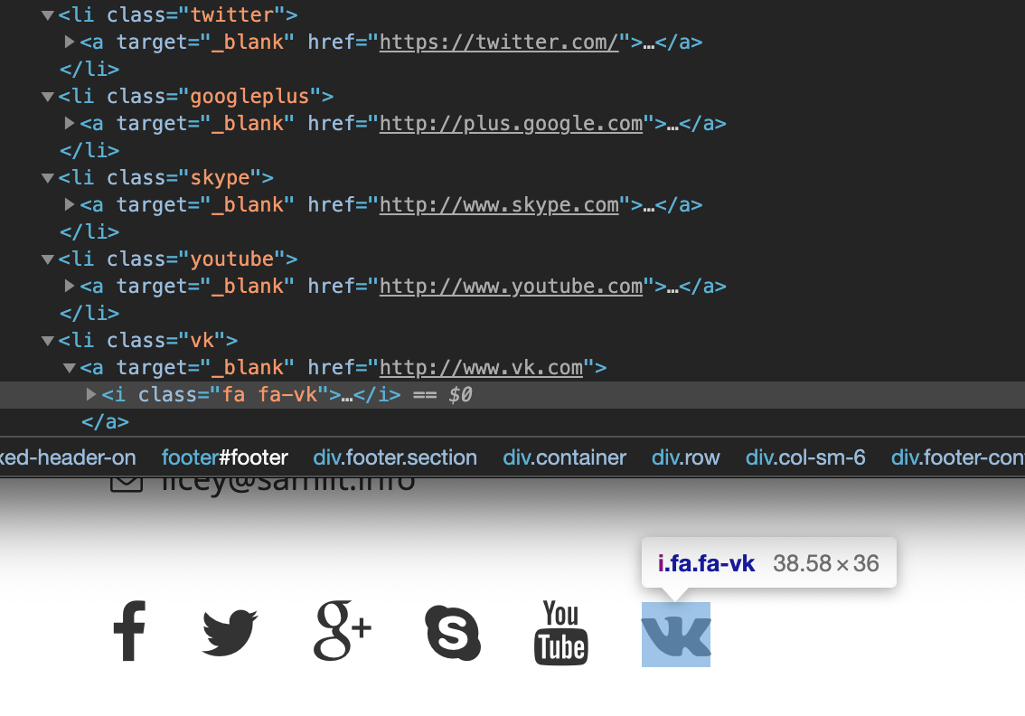14. Н Футер сделан неправильно: иконки соц. сетей два раза на странице
