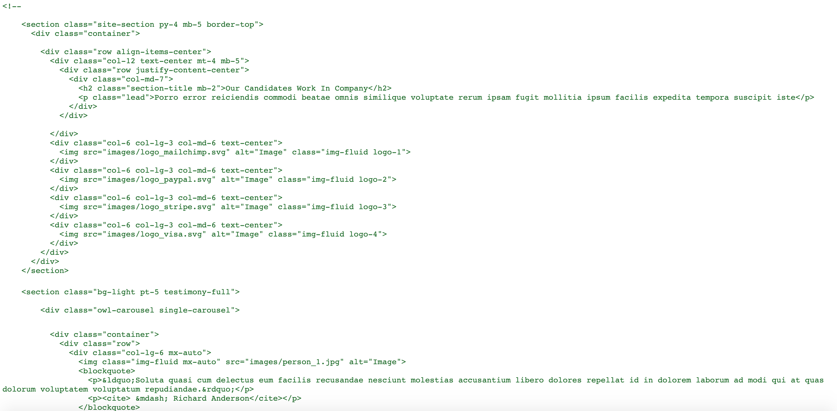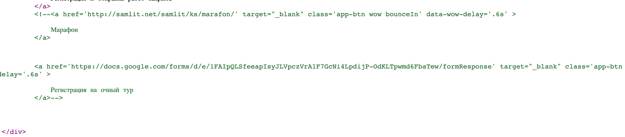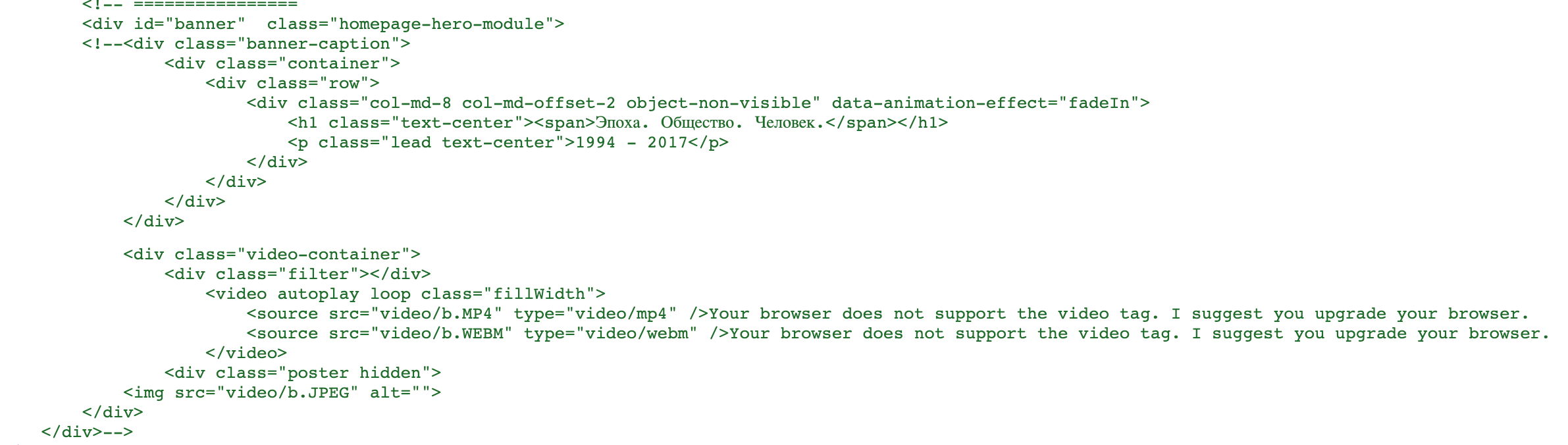 Как и на других сайтах, в коде много комментариев. Если так необходимо оставить кусок кода, который точно будет использован позже, можно сделать его невидимым с помощью display: none, но намного более лучшим решением будет удалить его из кода и сохранить где-то еще.