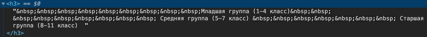 Здесь не просто совсем не используются мощные возможности CSS, наоборот, здесь использовано худшее из HTML. Коды пробелов, наголо и без тегов. Почему-то сначала один пробел, а потом два раза подряд два пробела и снова один. Хуже могло быть только изображениями.