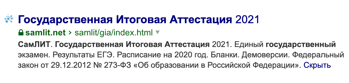 В превью сайта «Итоговая аттестация» не поместилось изображение, его стоит уменьшить, а название сайта поменять на «СамЛИТ – Итоговая аттестация»