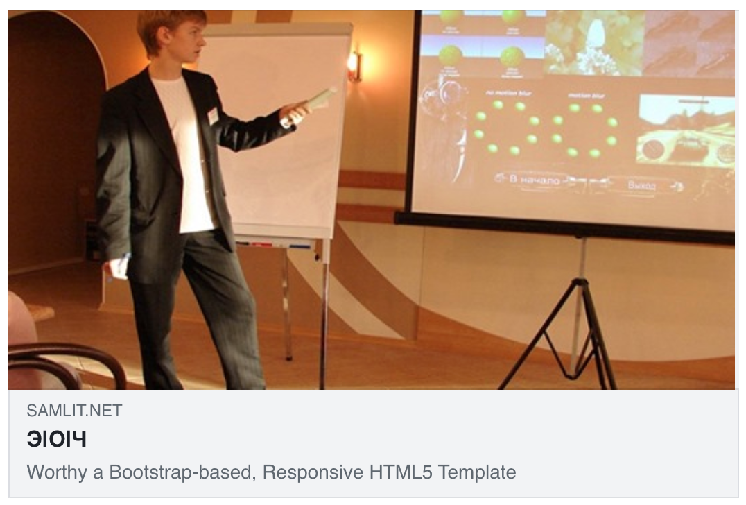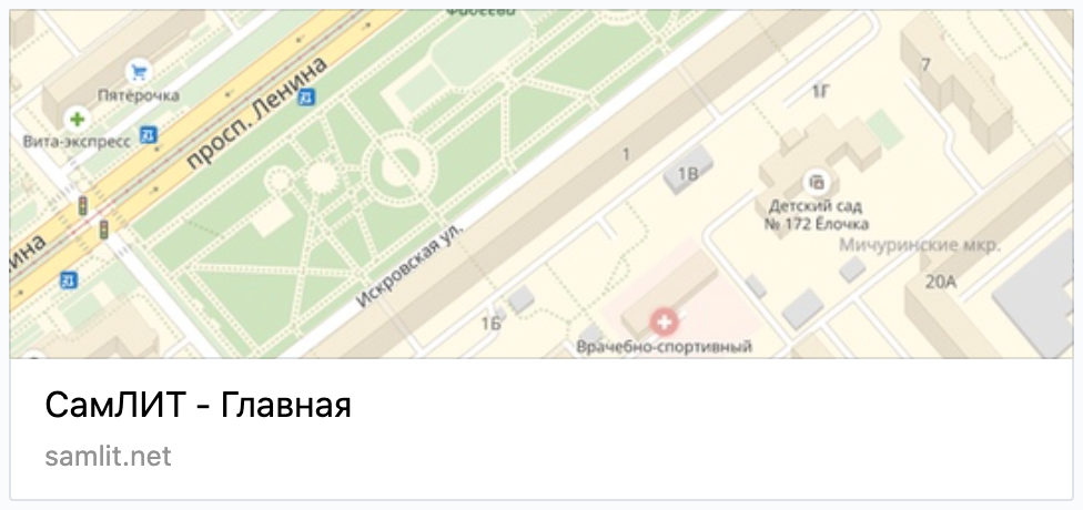 В Facebook превью не дает никакой информации посетителю, который впервые услышал об этом сайте.