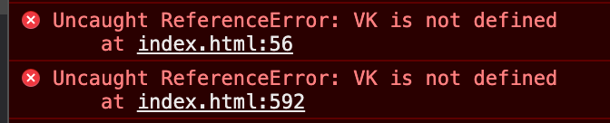Виджет ВКонтакте импортируется дважды на строках 56 и 592 и оба раза неудачно, потому что не указан скрипт виджета.