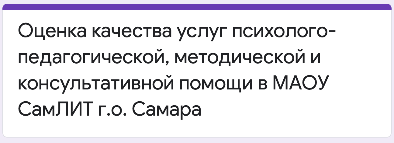 На этой странице две ссылки: Опрос о качестве оказания психолого-педагогической и консультативной помощи и Оценка качества услуг психолого-педагогической, методической и консультативной помощи в МАОУ СамЛИТ г.о. Самара.