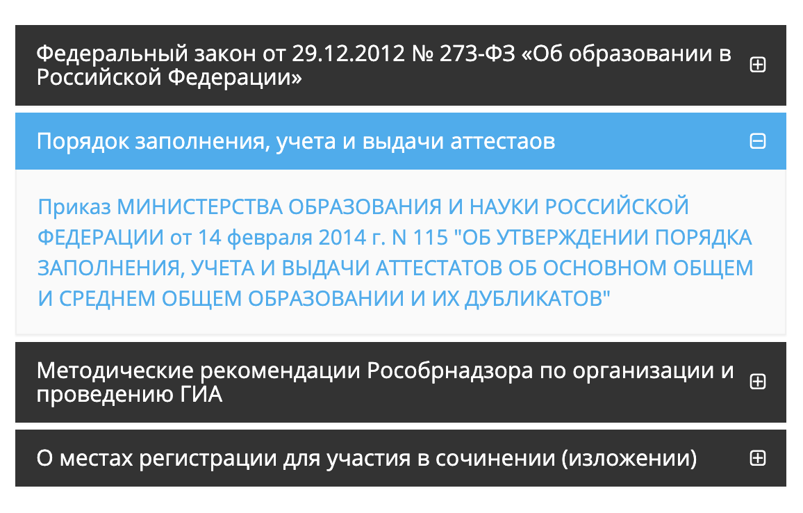 Все спойлеры на странице сайта итоговой аттестации содержат одну ссылку